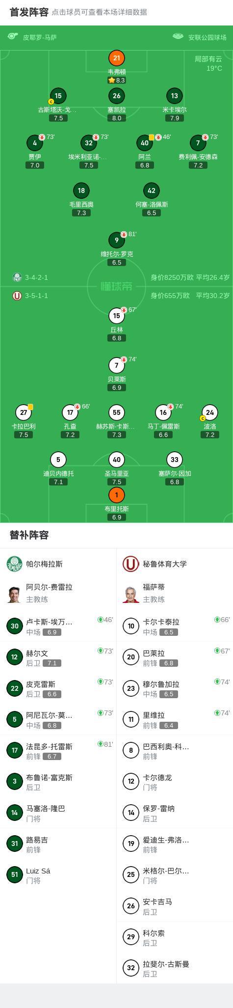 帕尔梅拉斯0-0秘鲁体育大学,势均力敌